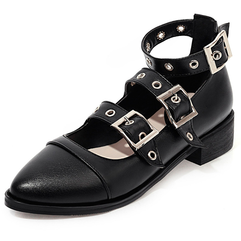 Chunky Heeled Roman Shoes with Studded Buckle